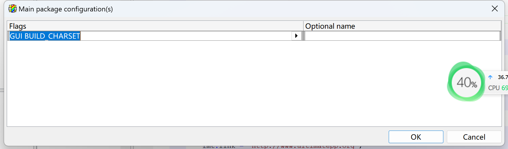 Open the 'Main package configuration' option to increase 'BUILD_ CHARSET' flag.