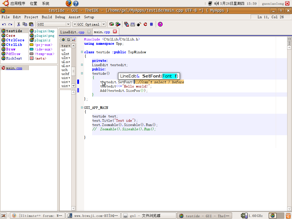 upp for linux, new create a project,use mouse do select text, if codetip pop,mouse can't select follow text.as below: