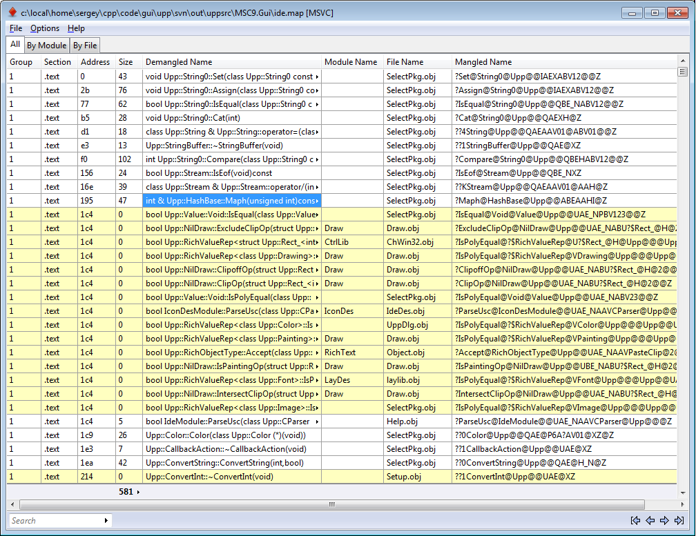 Home » Extra libraries, Code snippets, applications etc. » Applications created with U++ » Visual Studio Map File Browser