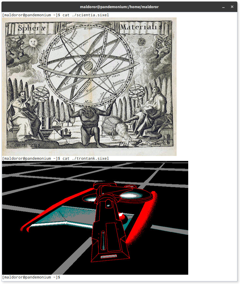 - SixelRenderer class and a convenience function: RenderSixelImage is also added to the package. This class and the function can also be used as a stand-alone sixel renderer.