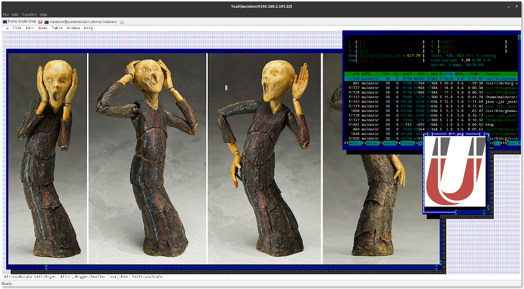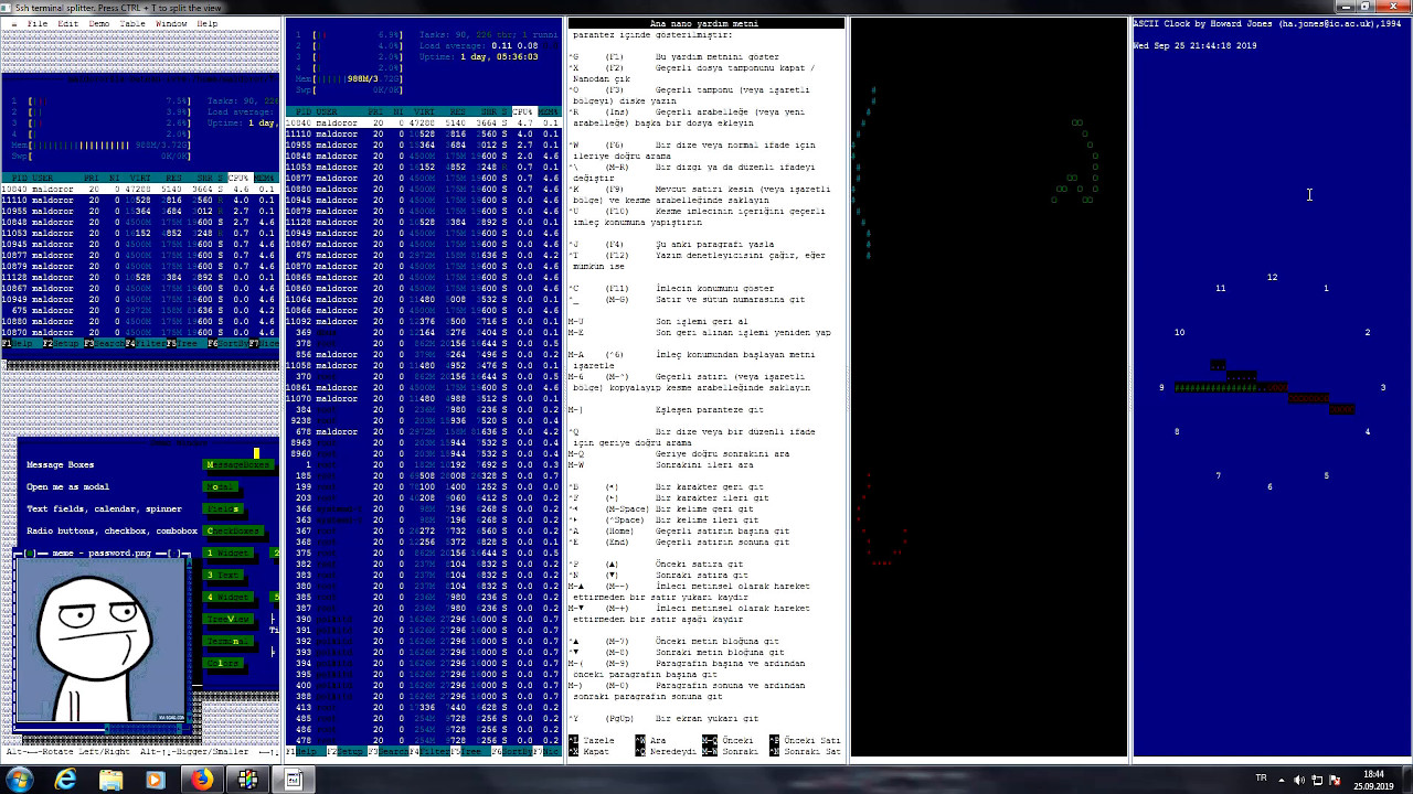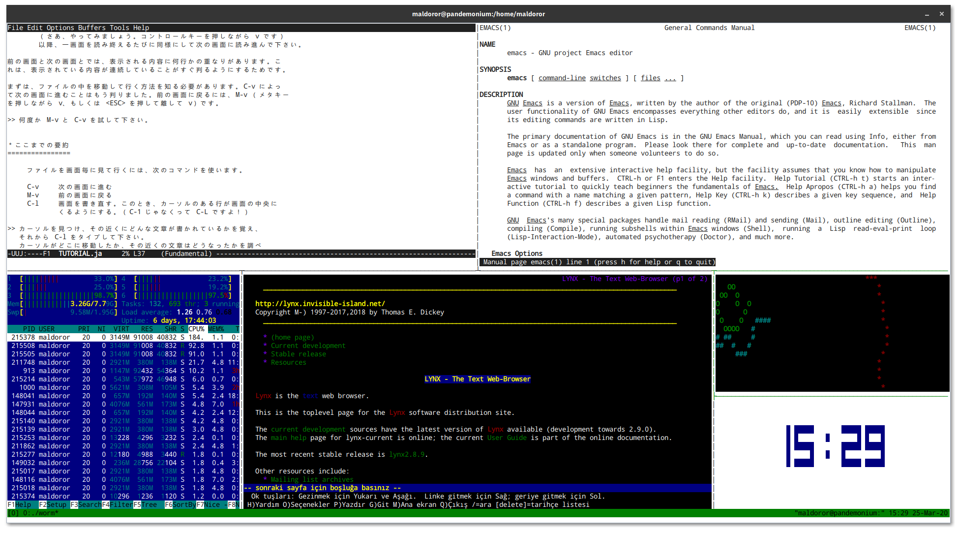 - Used apps and tools: Jexer text user interface (TUI), GNUPlot, Emacs, Nano, htop, ncurses demos.