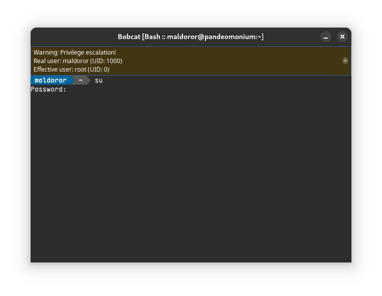 - Root detection on Linux: Bobcat can now detect privilege escalation and warn the user accordingly. (2a41e02)