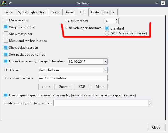 Here is the screen-shot of improved GDB menu inside IDE:
