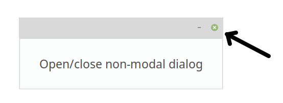 If a non-modal window gets created, a close button gets added to the title bar as follows: