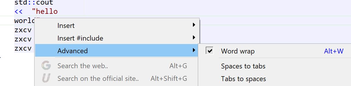 - wordwrapping code-lines - (a new thing) same as above, this is especially irritating because it breaks my concentration