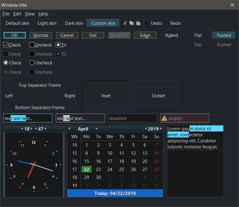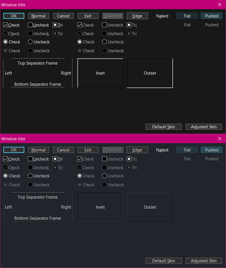 Once everything is fully skinable to my liking and I ran tests even with RNG colors, we can work on making a custom skin that doesn't care about Win10 and looks hopefully less amateurish.