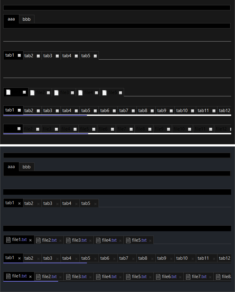 Oh, and there are more shenanigans with FileTabs icons. First of all, there is like a 10% chance they show up. Most of the time they are not visible at all. Then they are either light or dark per execution of the application. Weird... I'm investigating NativePathIcon, maybe that is the problem...