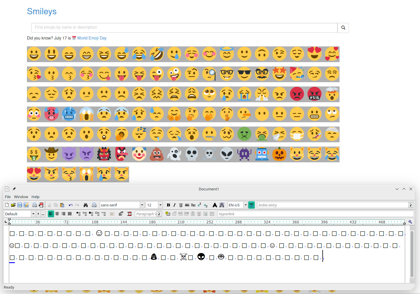 Libre Office in the same Linux Mint installation can show a whole lot of emojis for the same set.