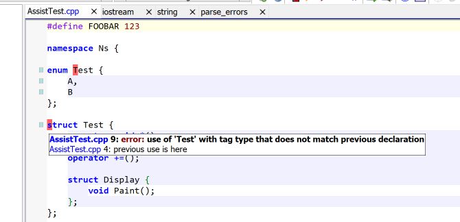 Also, yesterday I have changed "error at the end of line" (usually missing semicolon) to show just as single character.