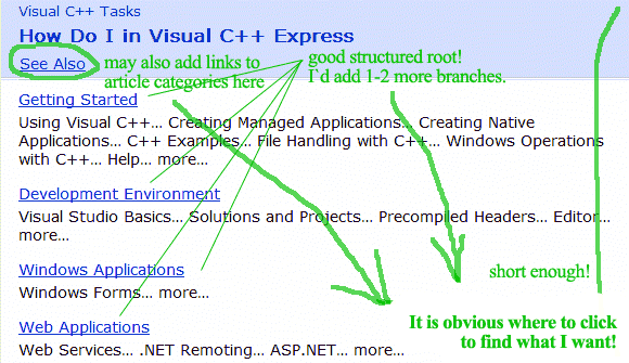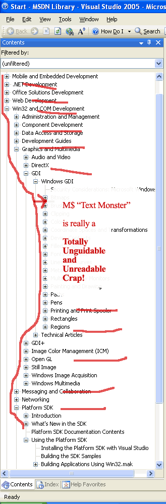 2) Information on package must be concentrated in one articles-tree. Each article has index-tags. So user has 3 ways to look at docs: manual view mode, index and full-text-search modes. Last two modes I`d like to be as MSDN ones.