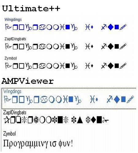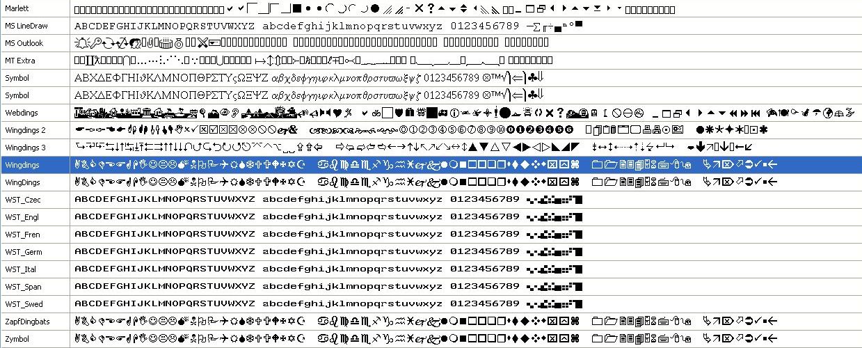 The ***major*** issue is that DrawText sometimes uses the wrong face to display text in a certain font. Namely on my machine a text in "ZapfDingbats" or in "Zymbol" is displayed in "Windings".