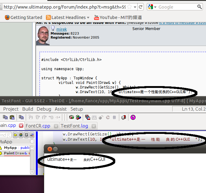 Home » U++ Library support » U++ Libraries and TheIDE: i18n, Unicode and Internationalization » It's suspected to be an issue with Font.