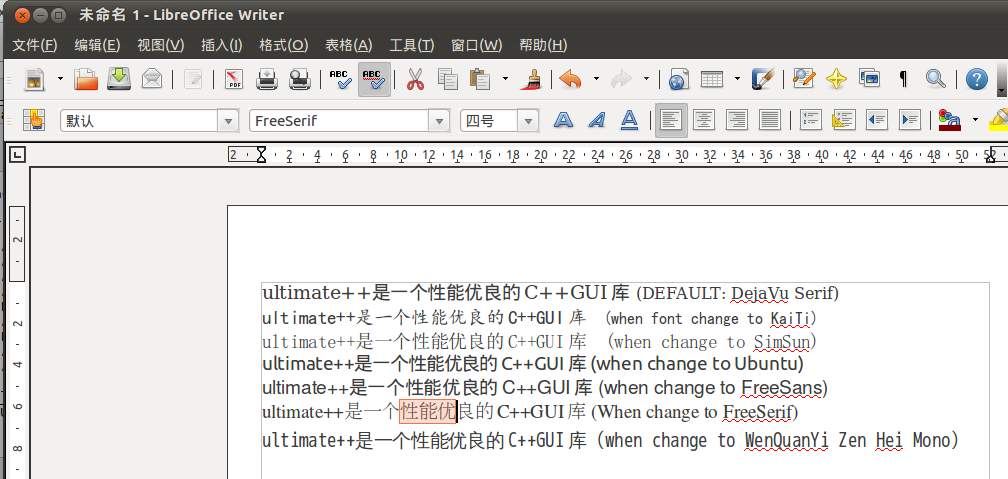 w.DrawText(10, 10, "ultimate++是一个性能优良的C++GUI库");