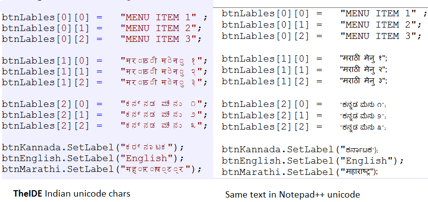 "upp-indian-fonts.png" file shows the strings as seen in TheIDE and in Notepad++. The text was created in notepad++ and pasted in TheIDE.
