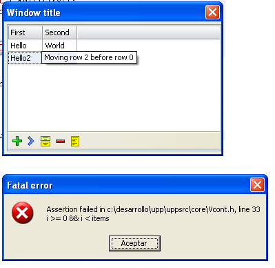 When dragging second line before first line it says "Moving row 2 before row 0". It should have to say "row 1". After that the exception appears. If I remove the Clear(), everything works perfect.