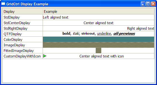 list.Add("CustomDisplayWithIcon", "Center aligned text with icon").GetCell(count, 1).SetDisplay(dg);