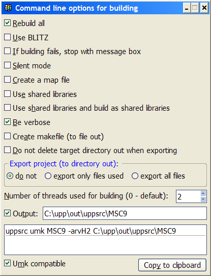 Home » U++ TheIDE » U++ TheIDE: Installation, Compiling and Running of theide » Can I generate parameters for UMK?