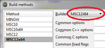 Have you selected in (menu) "Setup>Build methods.." (drop-down) Builder: MSC12X64?