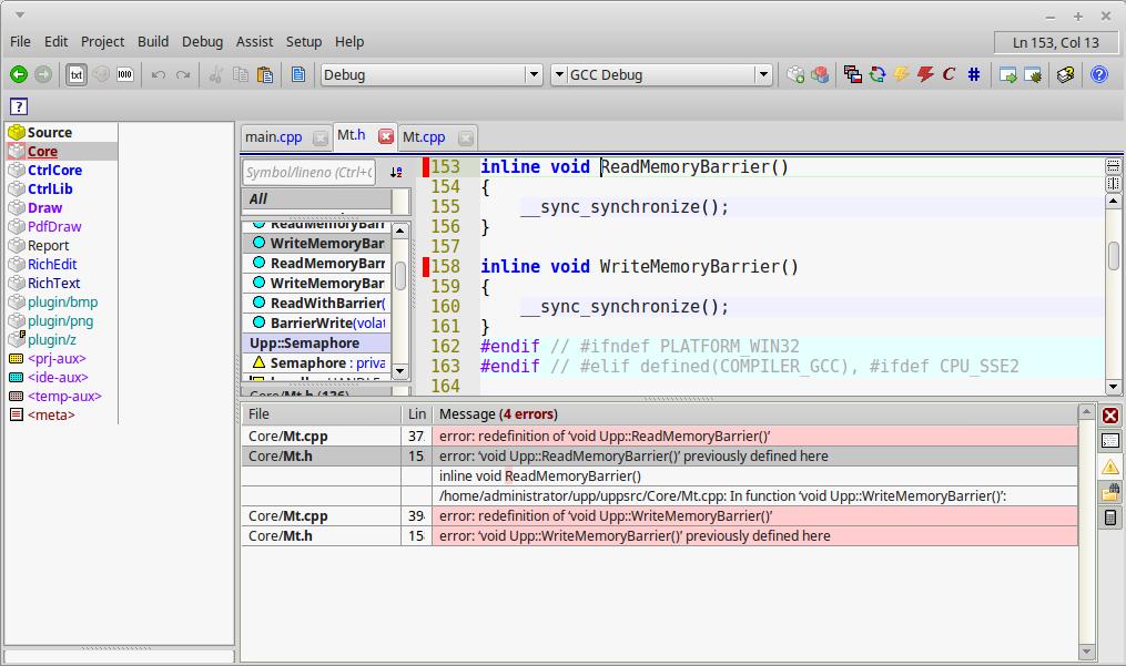 Home » U++ Library support » U++ MT-multithreading and servers » Mt.cpp broken compile using 9604 nightly snap-shot (Our app fails to compile using IDE: multiple definitions in Mt.cpp and Mt.h)