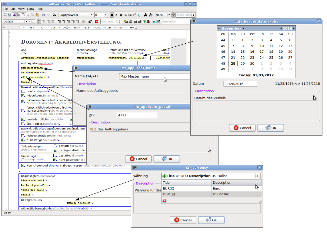 Via FieldManager you can create fields or import (*.csv, *.dsc). Some field calculate values from other field. Via setform-field values can be show/outline in a special format (simple formating rules).