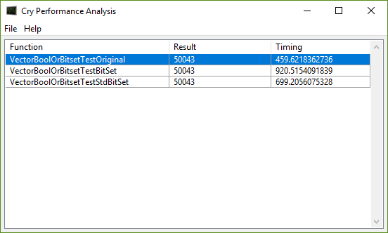 The result is as follows, Bits being approximately a factor 10 slower. std::bitset already seems to be a twice as fast: