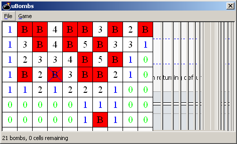 1) Windows which should not be resizable can be resized by dragging a point near the window corner inside the status line. Reproduced with the Bombs example. See screenshot below.