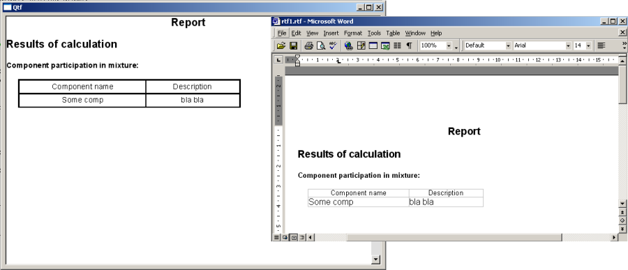 everything is OK. But when I open rtf document in MS Word, there are no borders for table, and text in second row has wrong style.